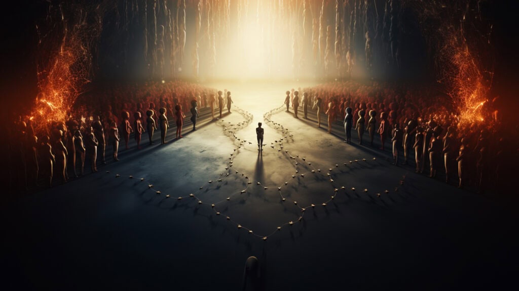Ryan’s presentation delves into the complex nature of ideology and its profound impact on our perceptions, interactions, and behaviors. He underscores the human brain’s inherent tendency to seek patterns, elucidating how ideologies aid us in deciphering the world but can also misguide us. Ryan describes the three definitions of “meta” he uses to elucidate the concept of meta-ideological politics: “meta” as transcending, “meta” as between, and “meta” as self-aware or self-referential.