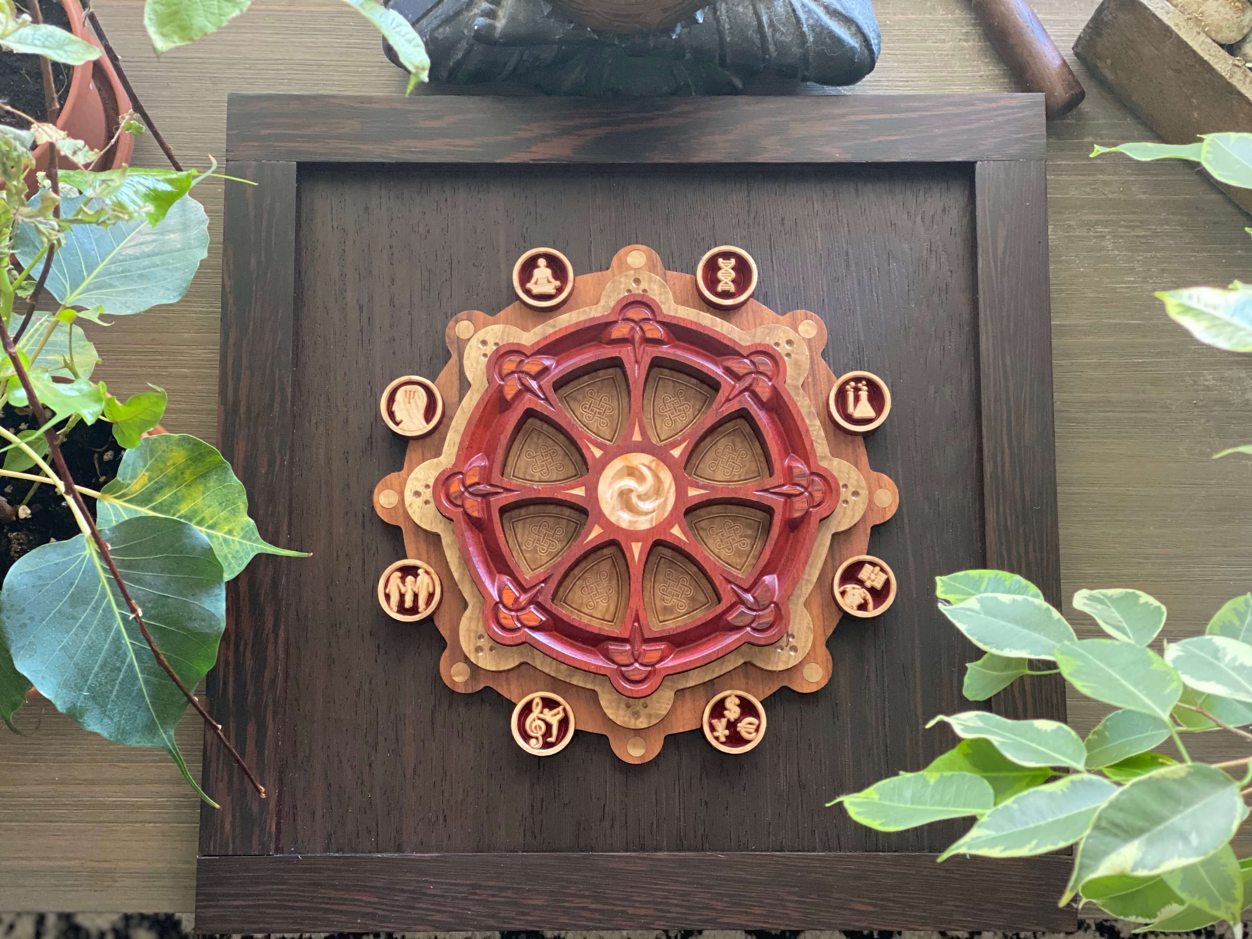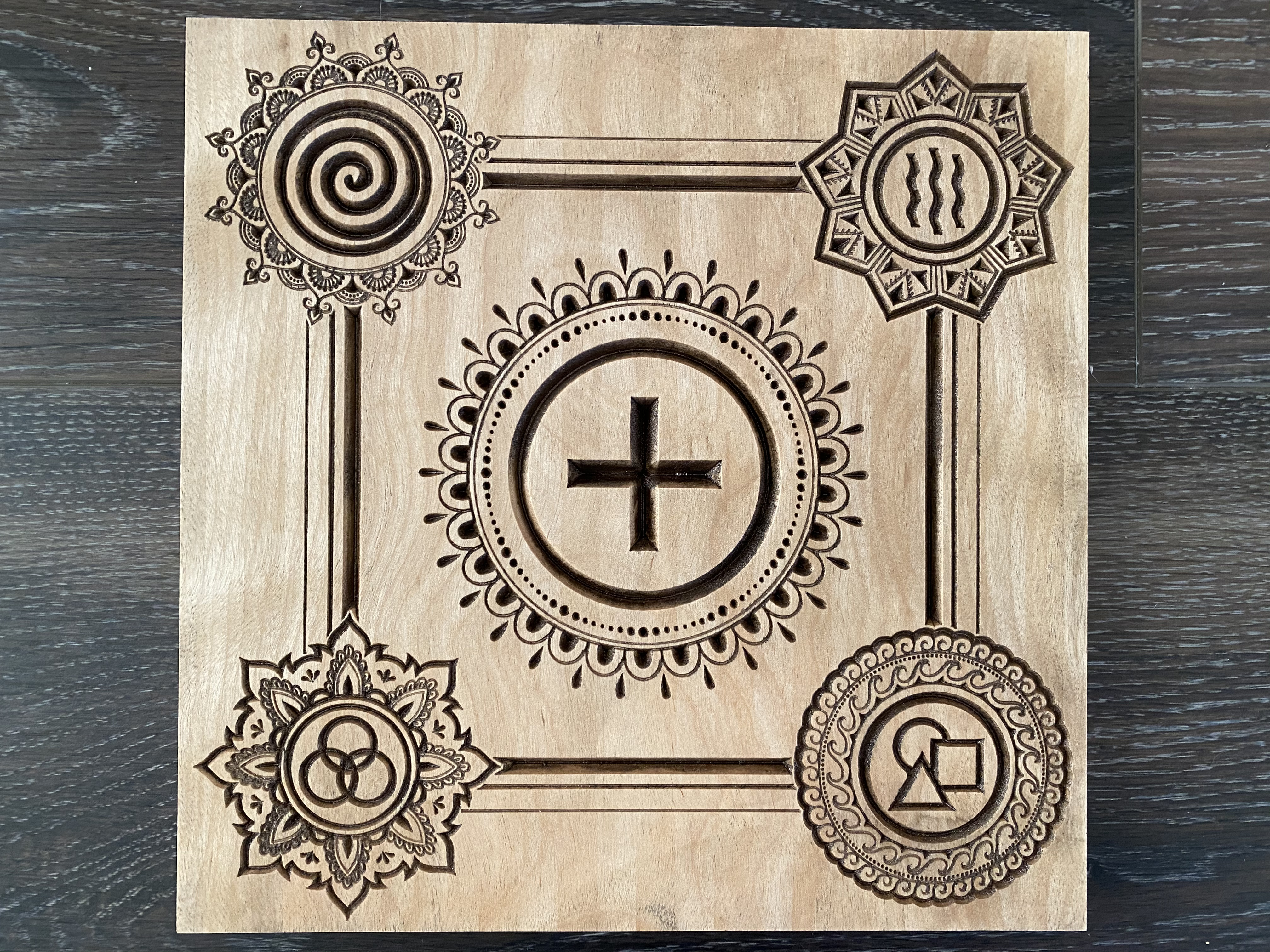 In recent years, much of my creativity has been focused around my woodworking. It has become an all-consuming passion for me, and over the last year or so I have created a number of custom-designed carvings that try to bring integral ideas and iconography out of the abstract and into solid material form.