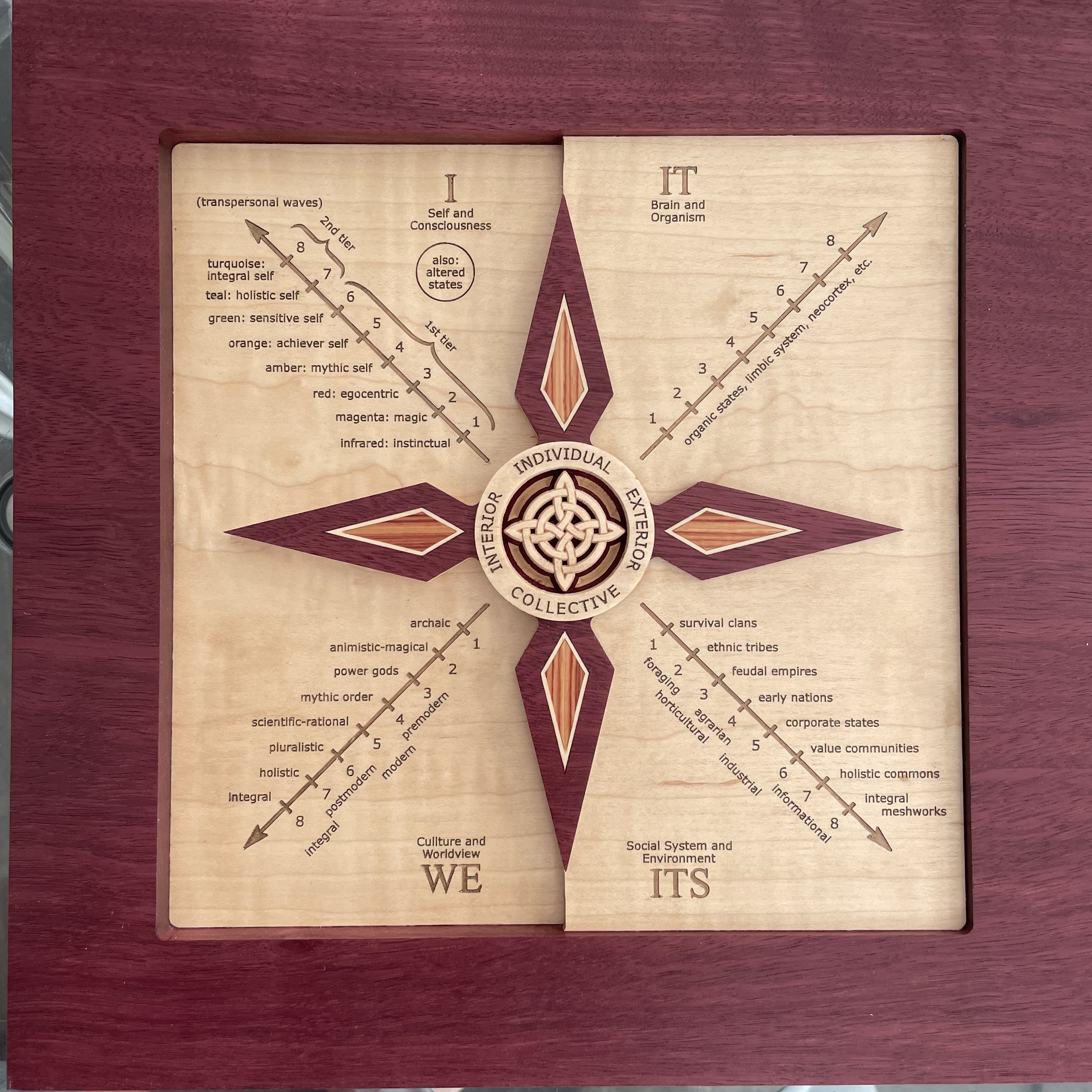 This is why I named my studio Vision Logix Woodworks — because my process brings together both hemispheres of art and engineering, symbolism and science, semiotics and robotics. My goal is essentially to take these many illustrations and diagrams that have generated so much meaning for us, to make them as beautiful as possible, and to give people an opportunity to bring a unique piece of integral art into their homes.